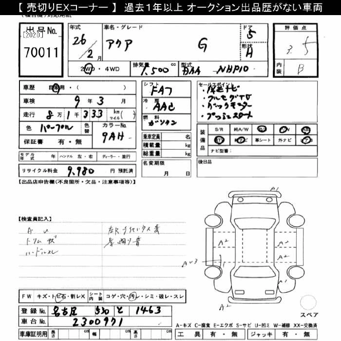 TOYOTA AQUA 2014 г., лот № 70011