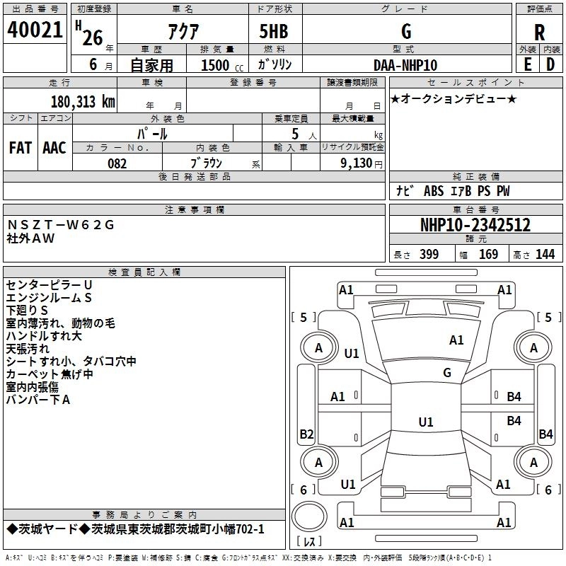 TOYOTA AQUA 2014 г., лот № 40021