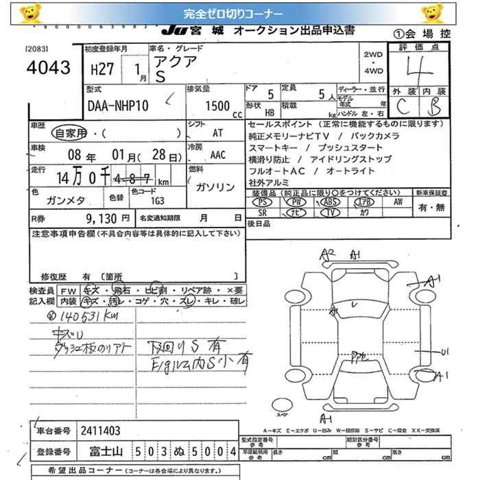 TOYOTA AQUA 2015 г., лот № 4043