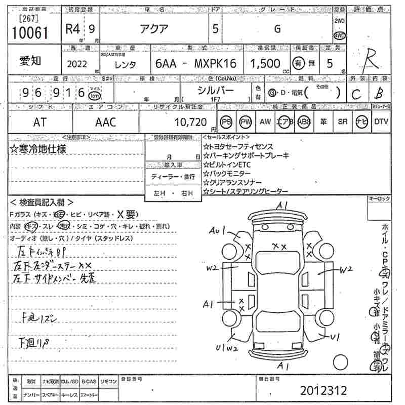 TOYOTA AQUA 2022 г., лот № 10061