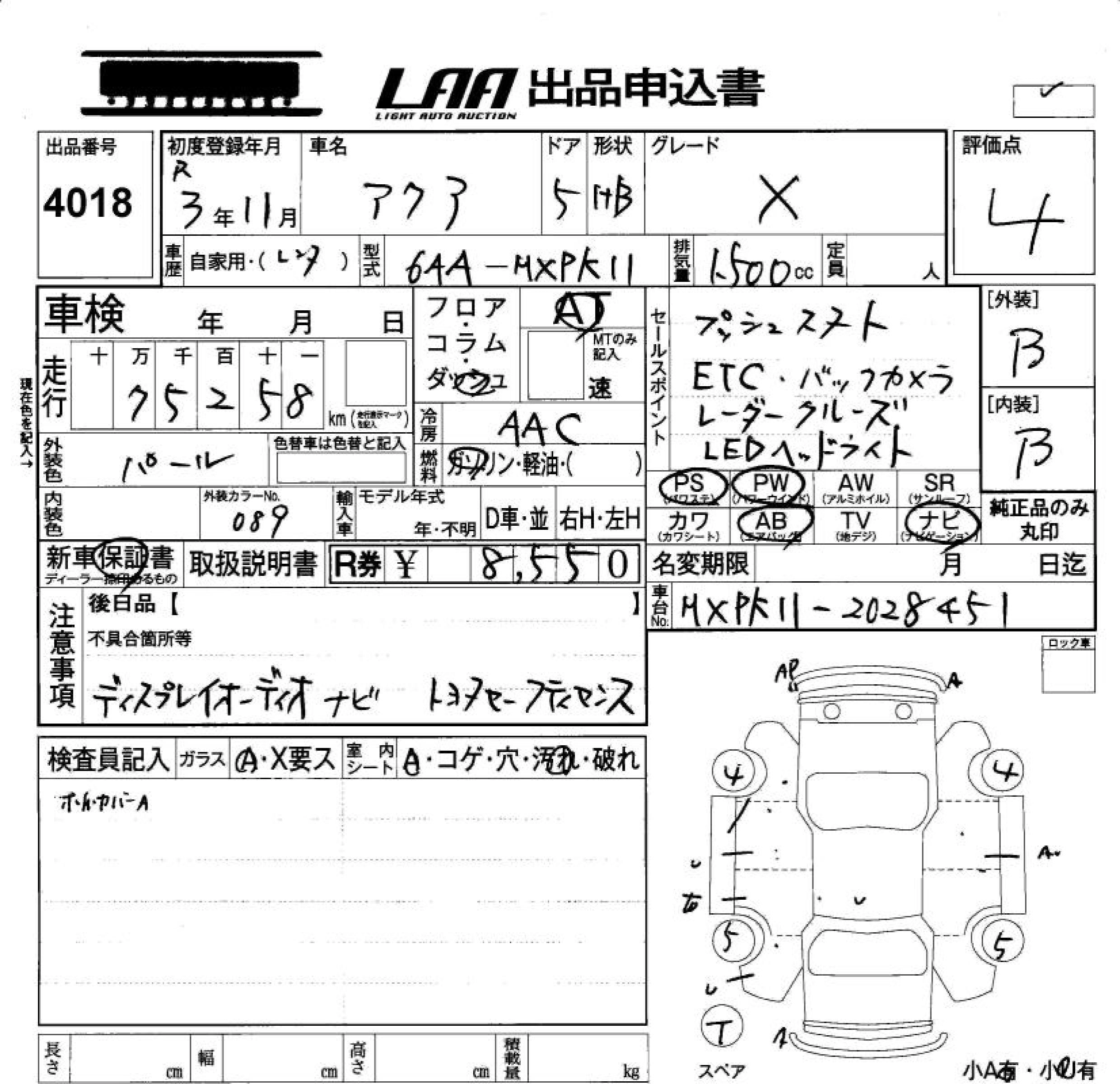 Статус не продан Лот 4018 Аукцион LAA Okayama Дата аукциона 21.11.2025
