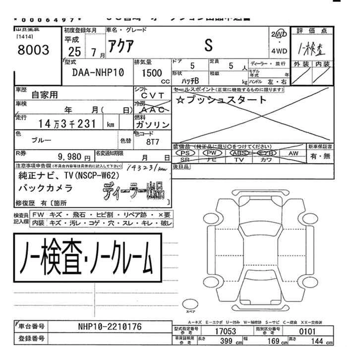 Год выпуска2013 Пробег 143 000 км КузовDAA-NHP10 КомплектацияS 2WD