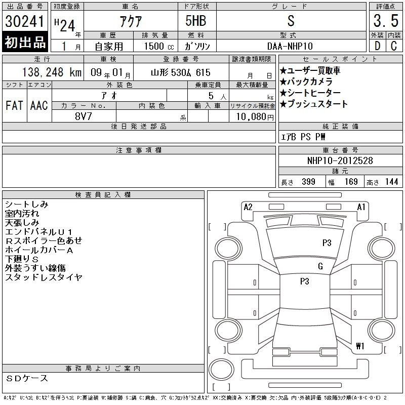 TOYOTA AQUA 2012 г., лот № 30241