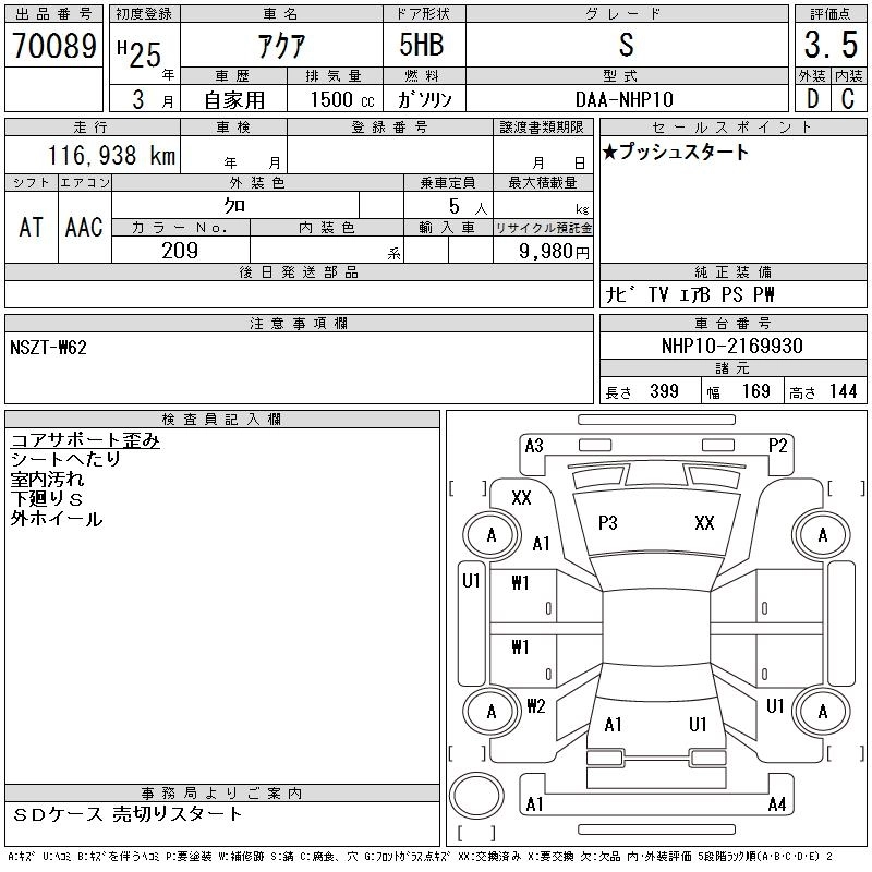 TOYOTA AQUA 2013 г., лот № 70089