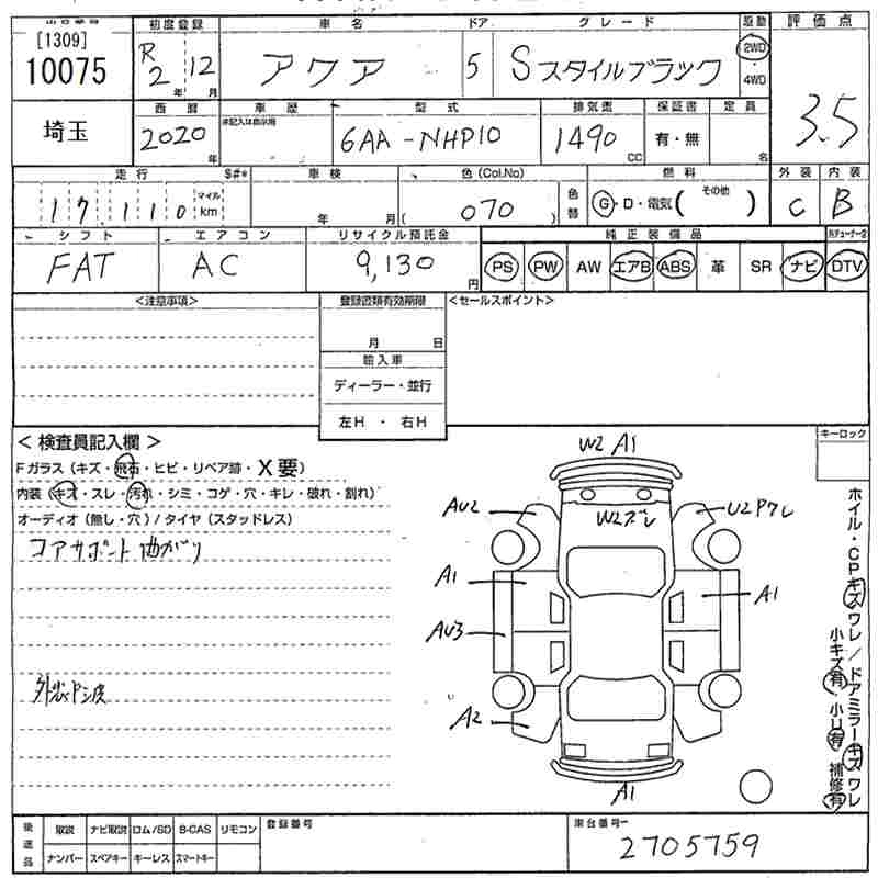 TOYOTA AQUA 2020 г., лот № 10075