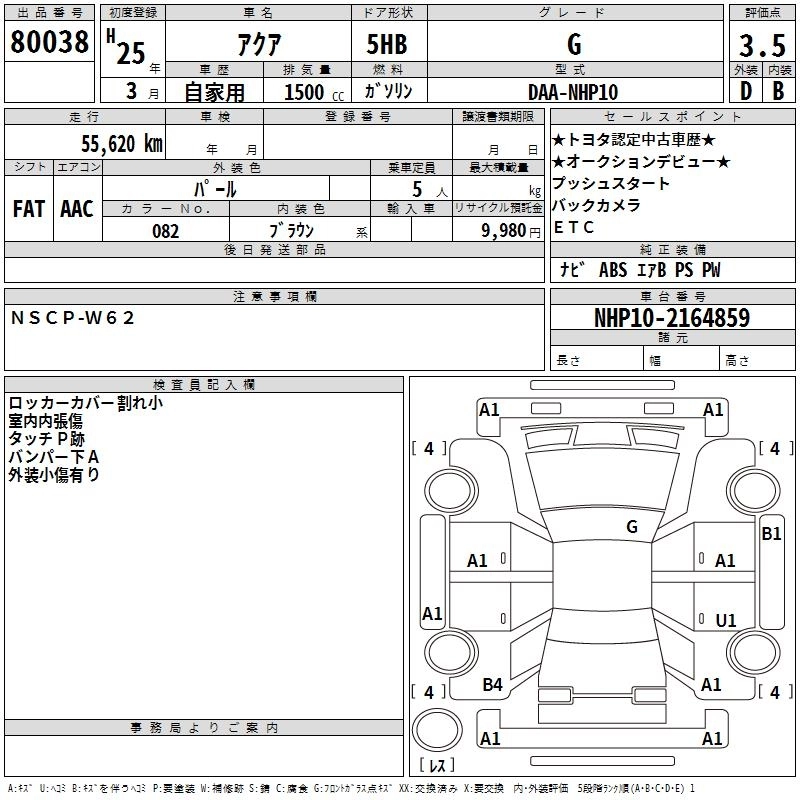 TOYOTA AQUA 2013 г., лот № 80038