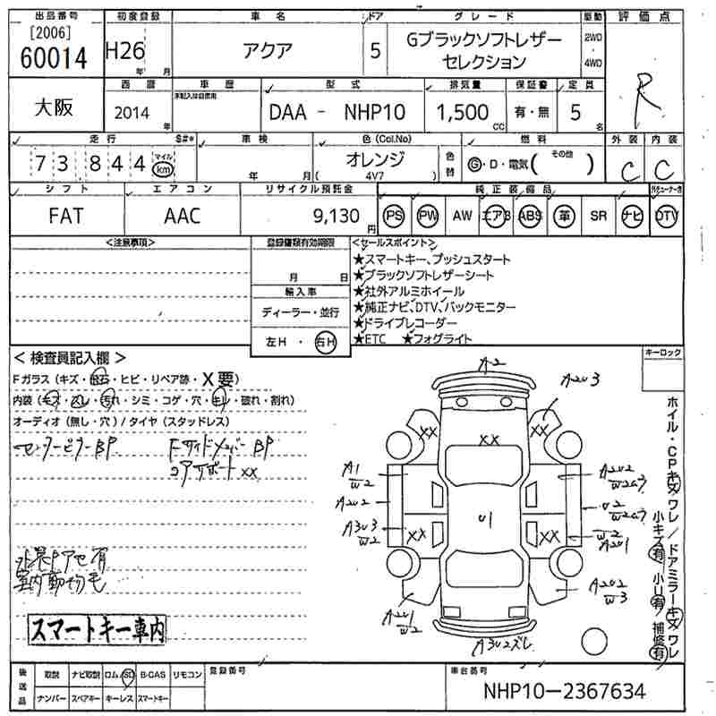 TOYOTA AQUA 2014 г., лот № 60014