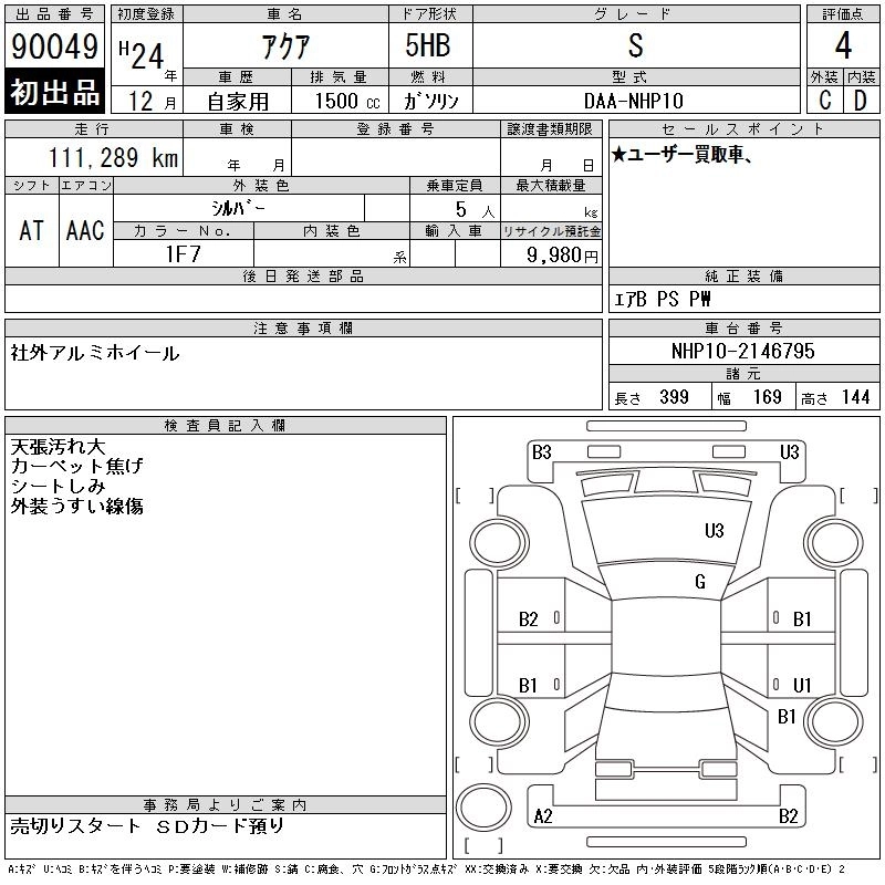 TOYOTA AQUA 2012 г., лот № 90049