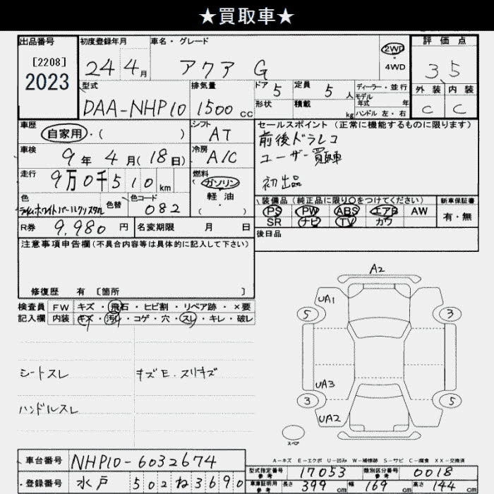 TOYOTA AQUA 2012 г., лот № 2023