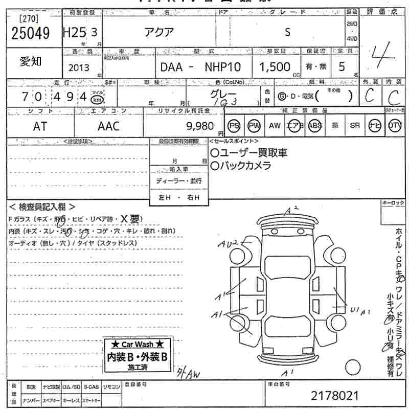 TOYOTA AQUA 2013 г., лот № 25049