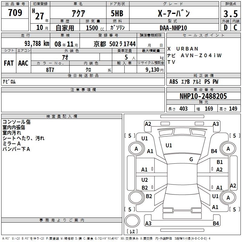 TOYOTA AQUA 2015 г., лот № 709