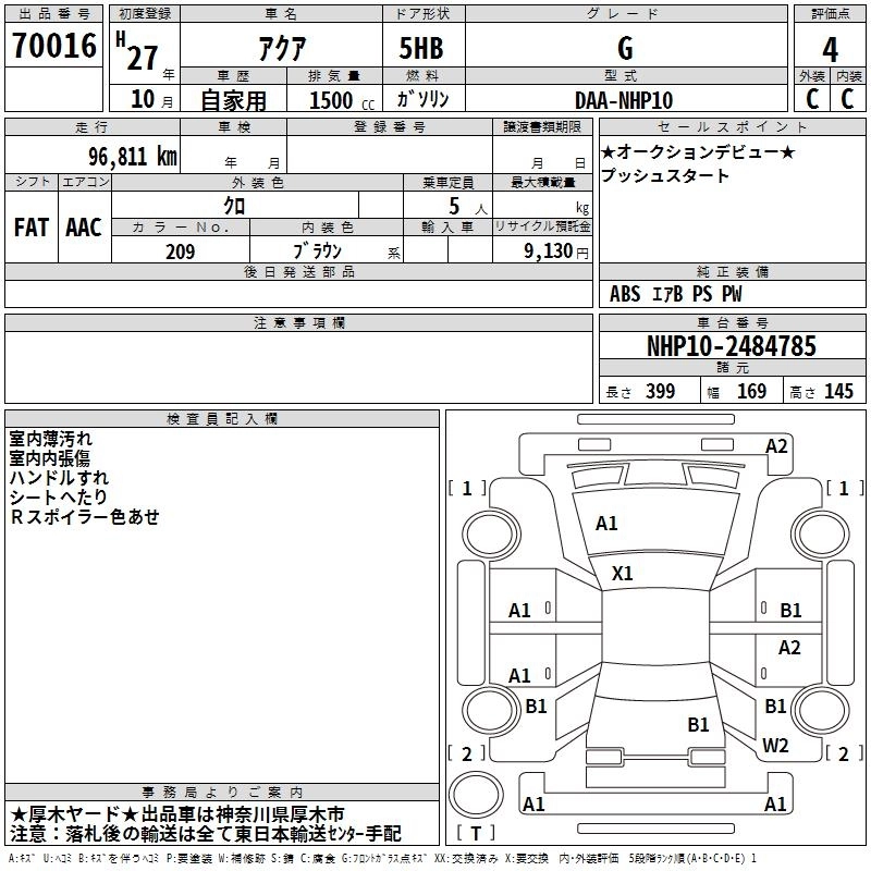 TOYOTA AQUA 2015 г., лот № 70016