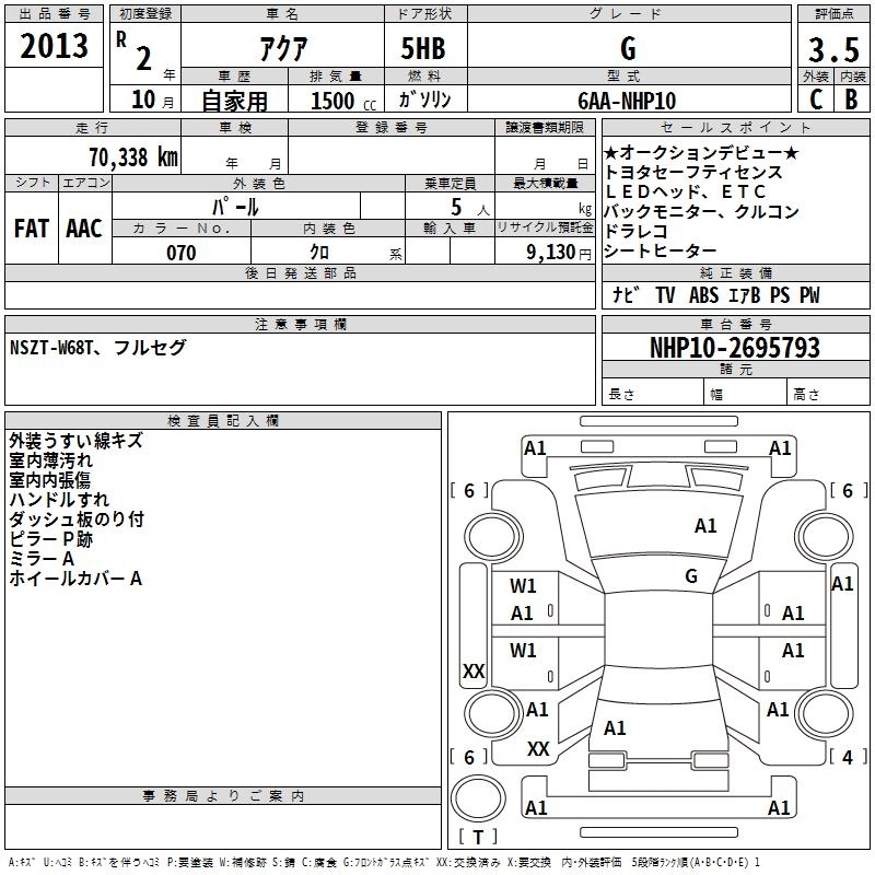 TOYOTA AQUA 2020 г., лот № 2013