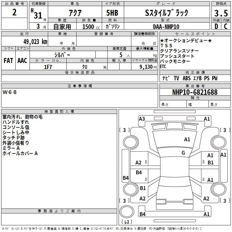 TOYOTA AQUA 2019 г., лот № 2