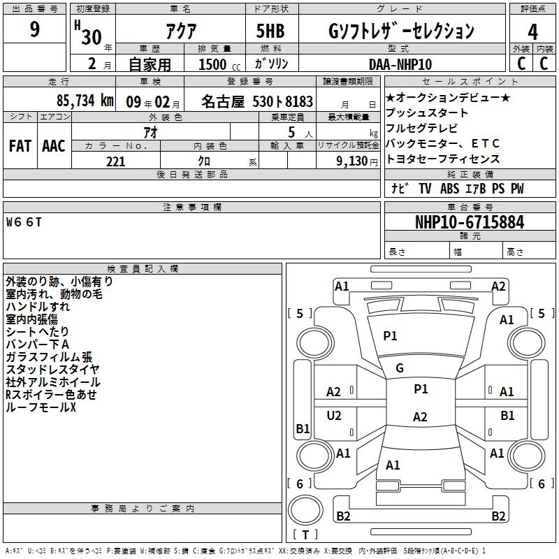 TOYOTA AQUA 2018 г., лот № 9