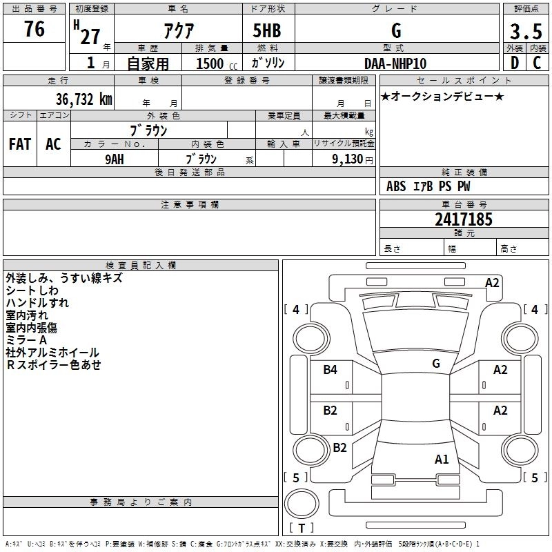 TOYOTA AQUA 2015 г., лот № 76