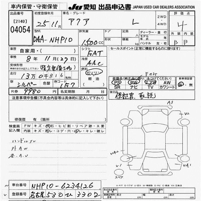 Год выпуска2013 Пробег 131 000 км КузовNHP10 КомплектацияL
