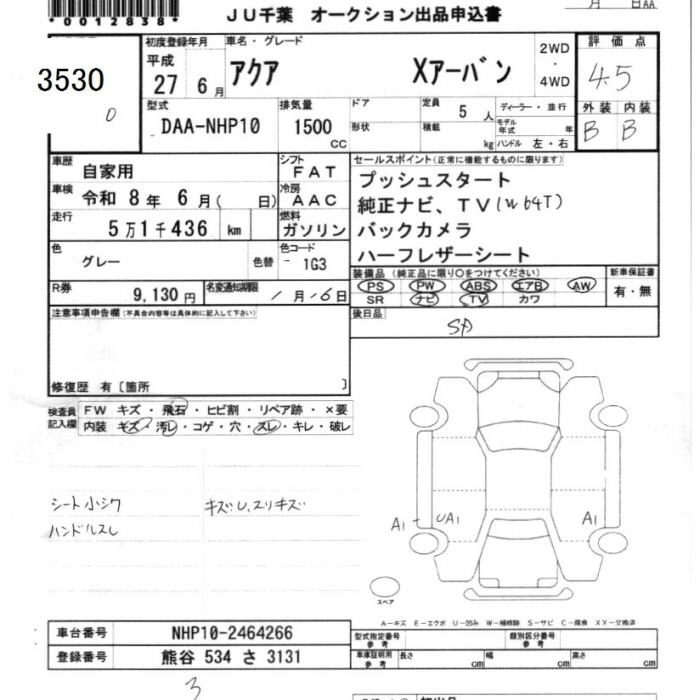 TOYOTA AQUA 2015 г., лот № 3530