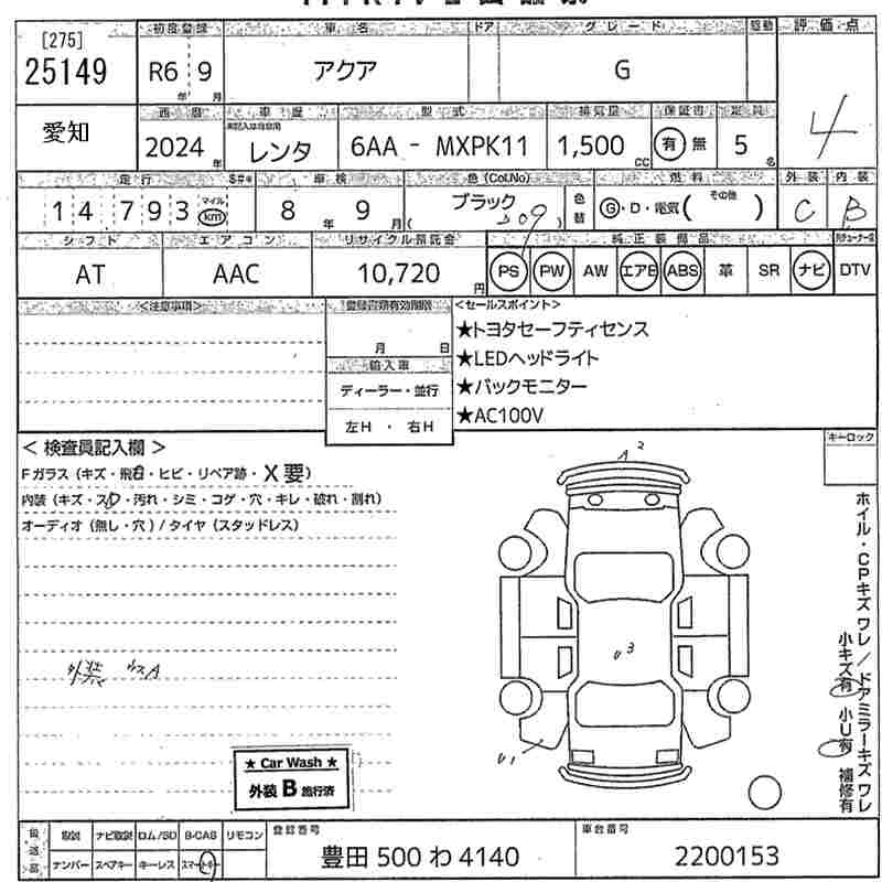 TOYOTA AQUA 2024 г., лот № 25149