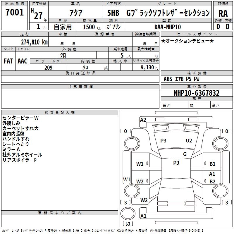 TOYOTA AQUA 2015 г., лот № 7001