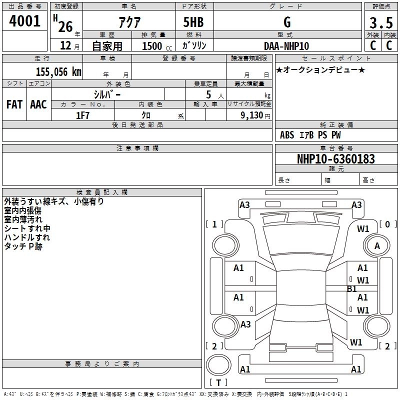 TOYOTA AQUA 2014 г., лот № 4001