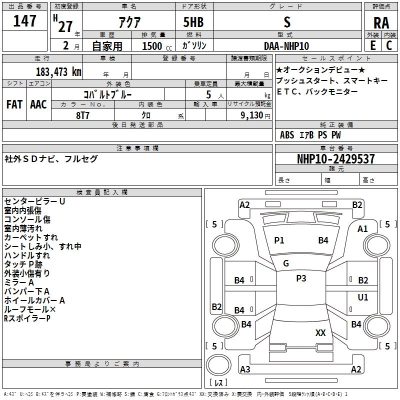 TOYOTA AQUA 2015 г., лот № 147