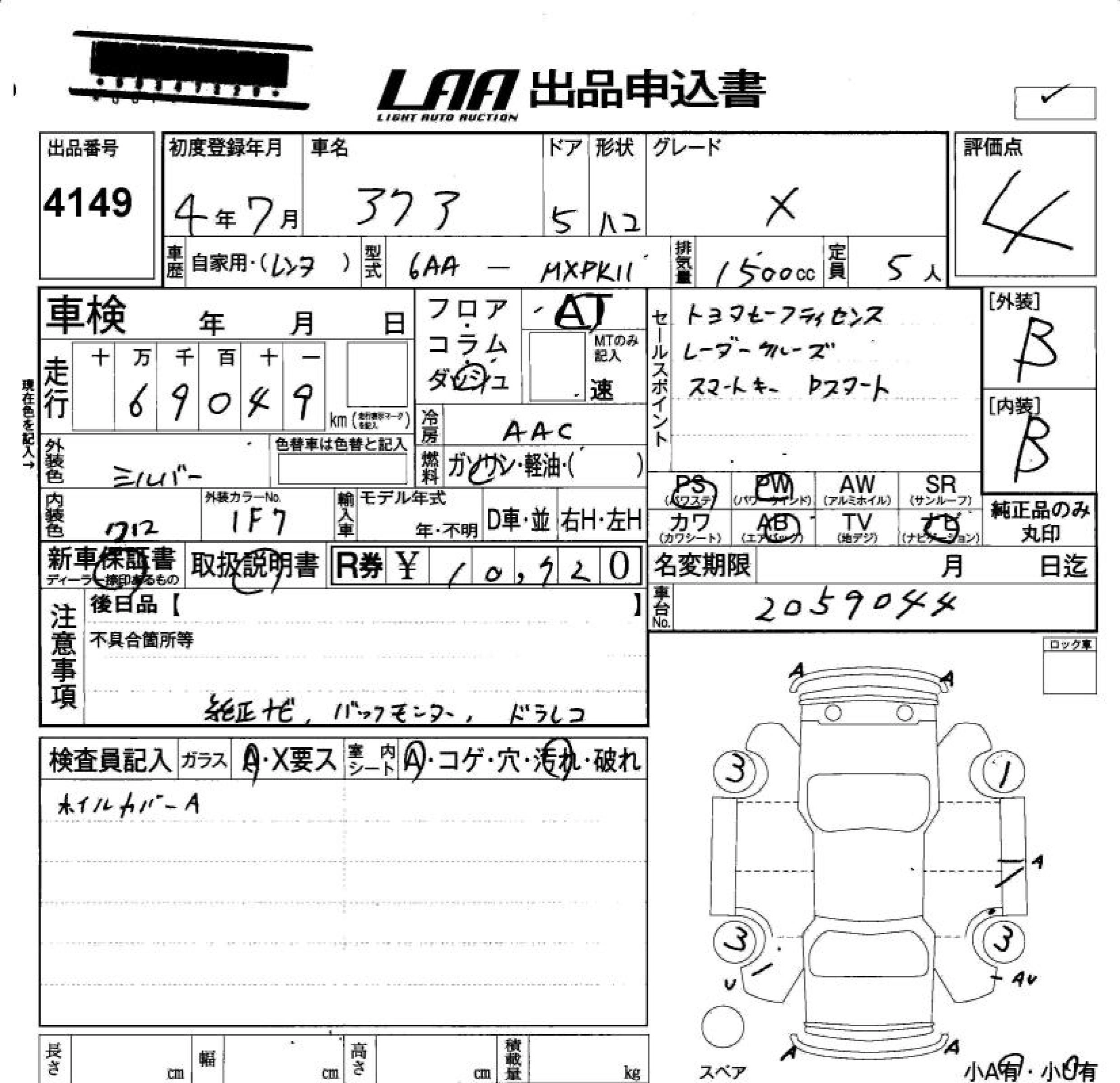 Статус не продан Лот 4149 Аукцион LAA Okayama Дата аукциона 23.01.2026