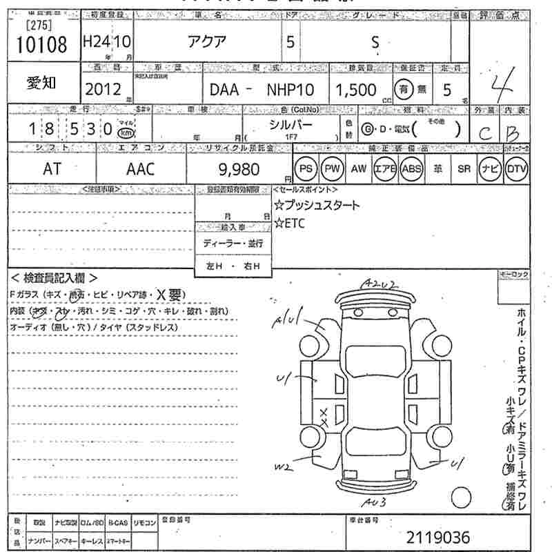 TOYOTA AQUA 2012 г., лот № 10108