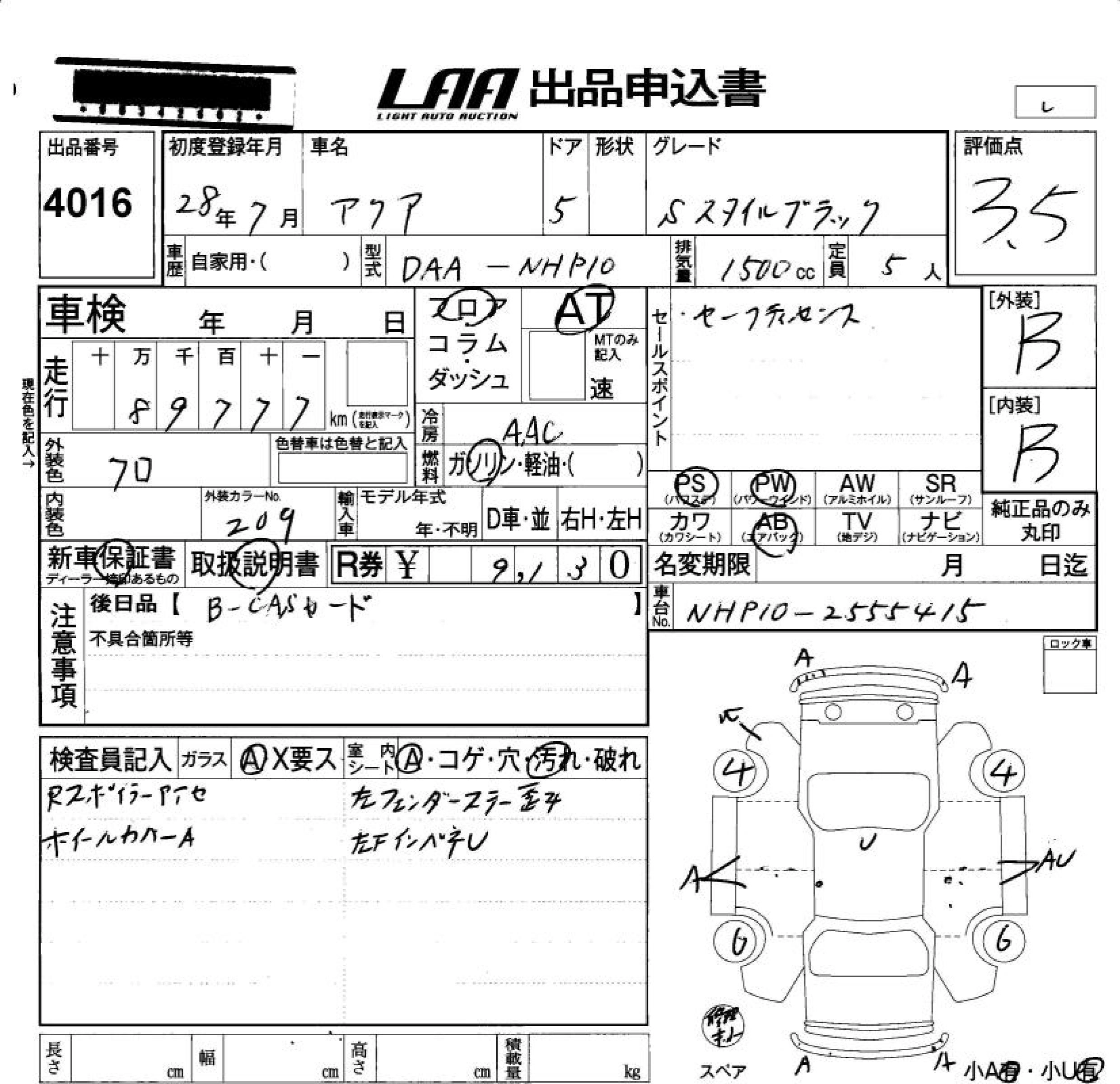 TOYOTA AQUA 2016 г., лот № 4016
