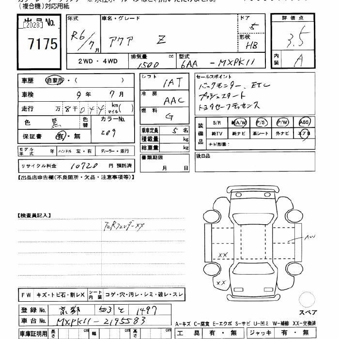 TOYOTA AQUA 2024 г., лот № 7175