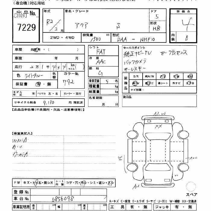 TOYOTA AQUA 2020 г., лот № 7229