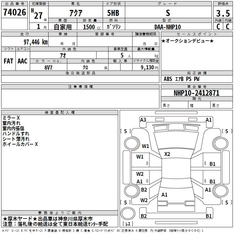 TOYOTA AQUA 2015 г., лот № 74026