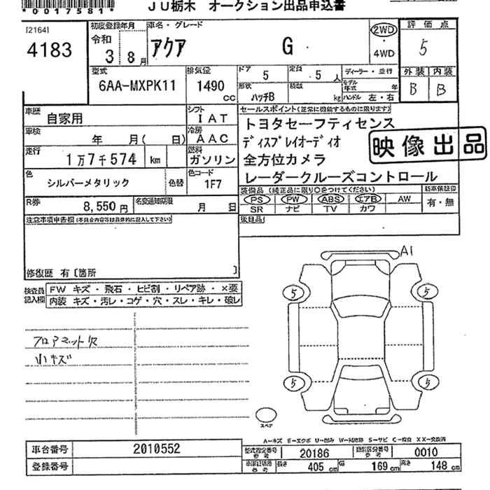 TOYOTA AQUA 2021 г., лот № 4183
