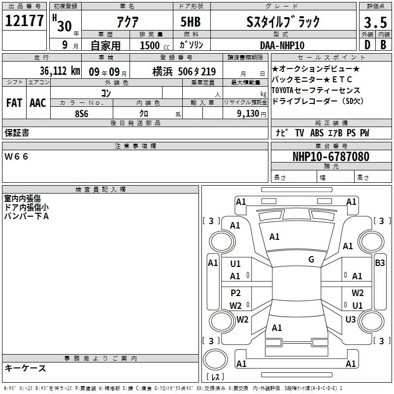 TOYOTA AQUA 2018 г., лот № 12177