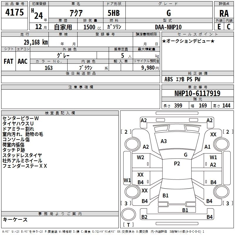 TOYOTA AQUA 2012 г., лот № 4175