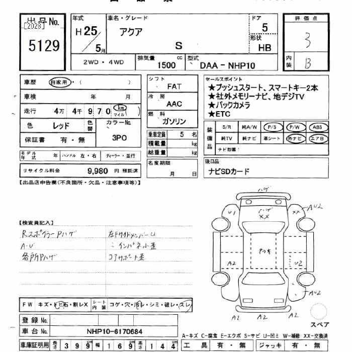 TOYOTA AQUA 2013 г., лот № 5129