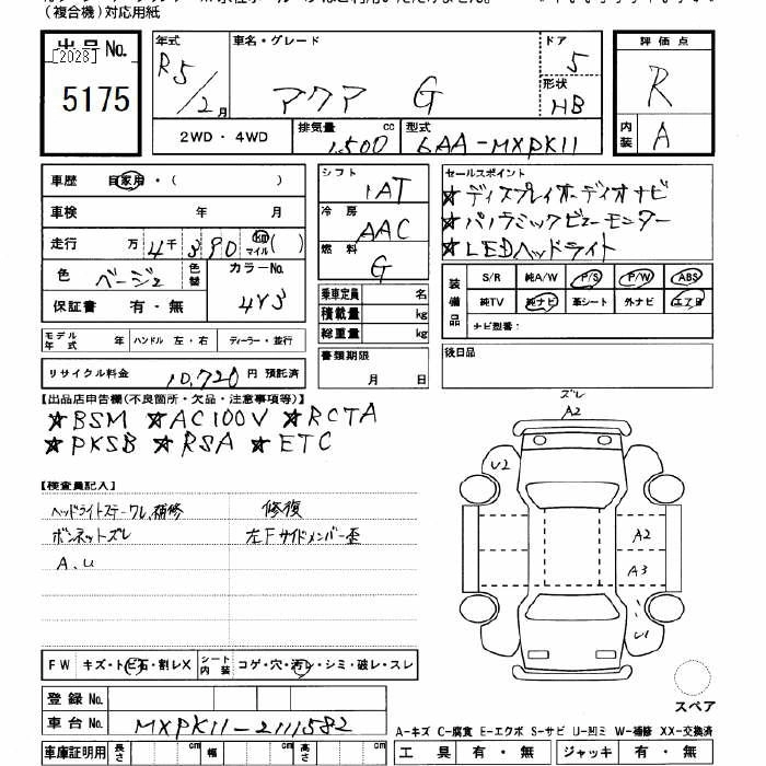 TOYOTA AQUA 2023 г., лот № 5175