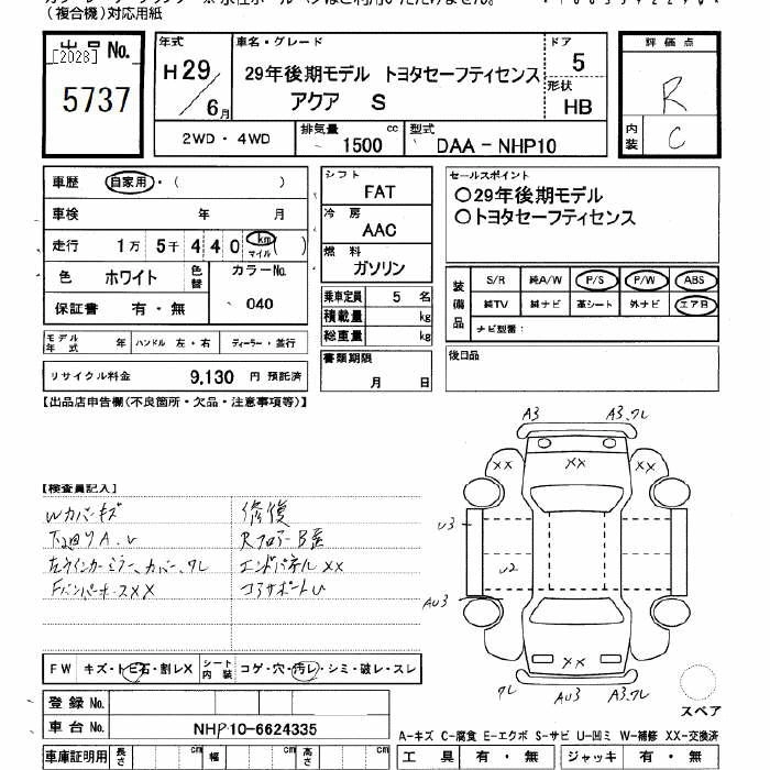 TOYOTA AQUA 2017 г., лот № 5737