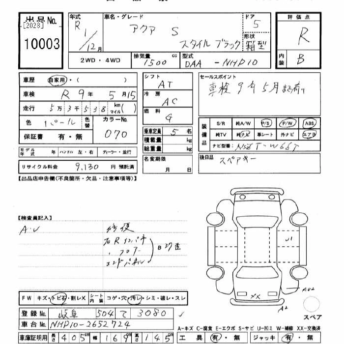 Стартовая цена авто на аукционе 10 000 ¥
