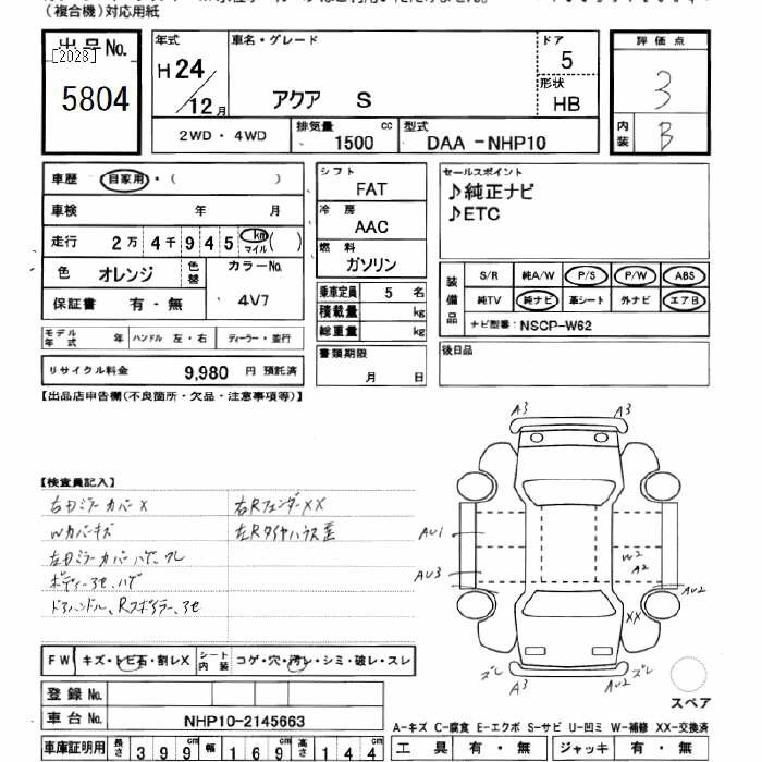 TOYOTA AQUA 2012 г., лот № 5804
