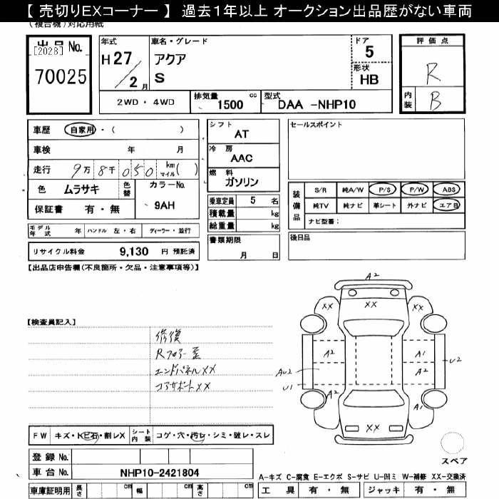 TOYOTA AQUA 2015 г., лот № 70025