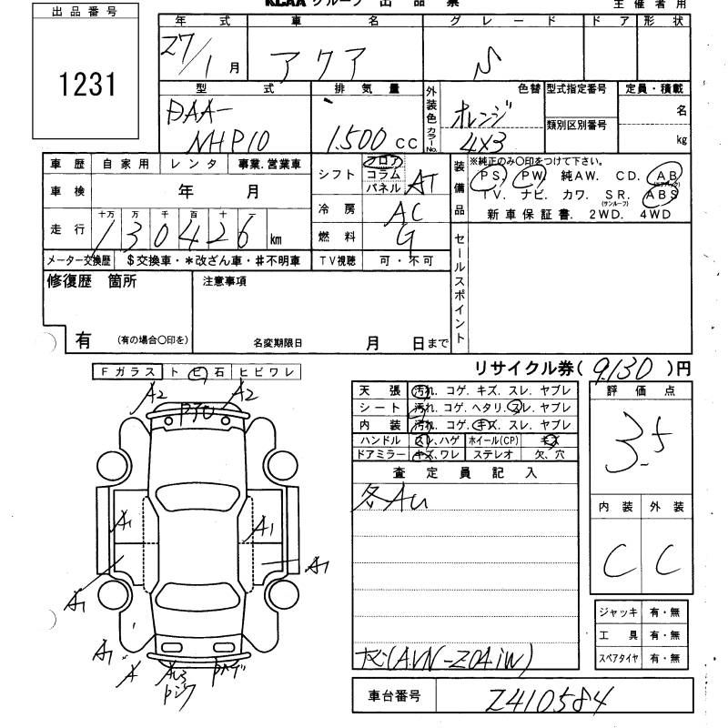 TOYOTA AQUA 2015 г., лот № 1231