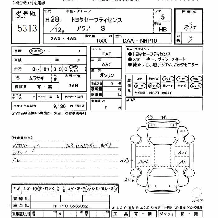 TOYOTA AQUA 2016 г., лот № 5313