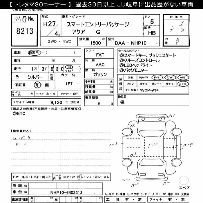 TOYOTA AQUA 2015 г., лот № 8213