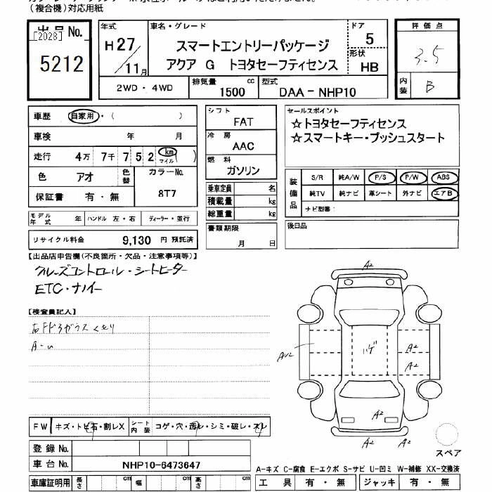 Год выпуска2015 Пробег 47 000 км КузовNHP10 КомплектацияG SMART ENTRY PACKAGE TOYOTA SAFETY SENS
