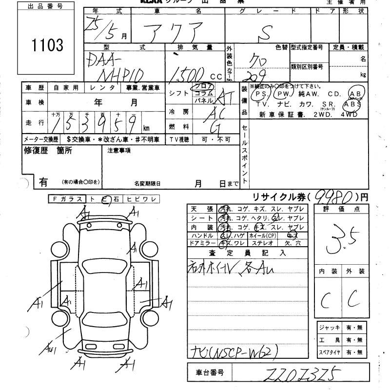 TOYOTA AQUA 2013 г., лот № 1103