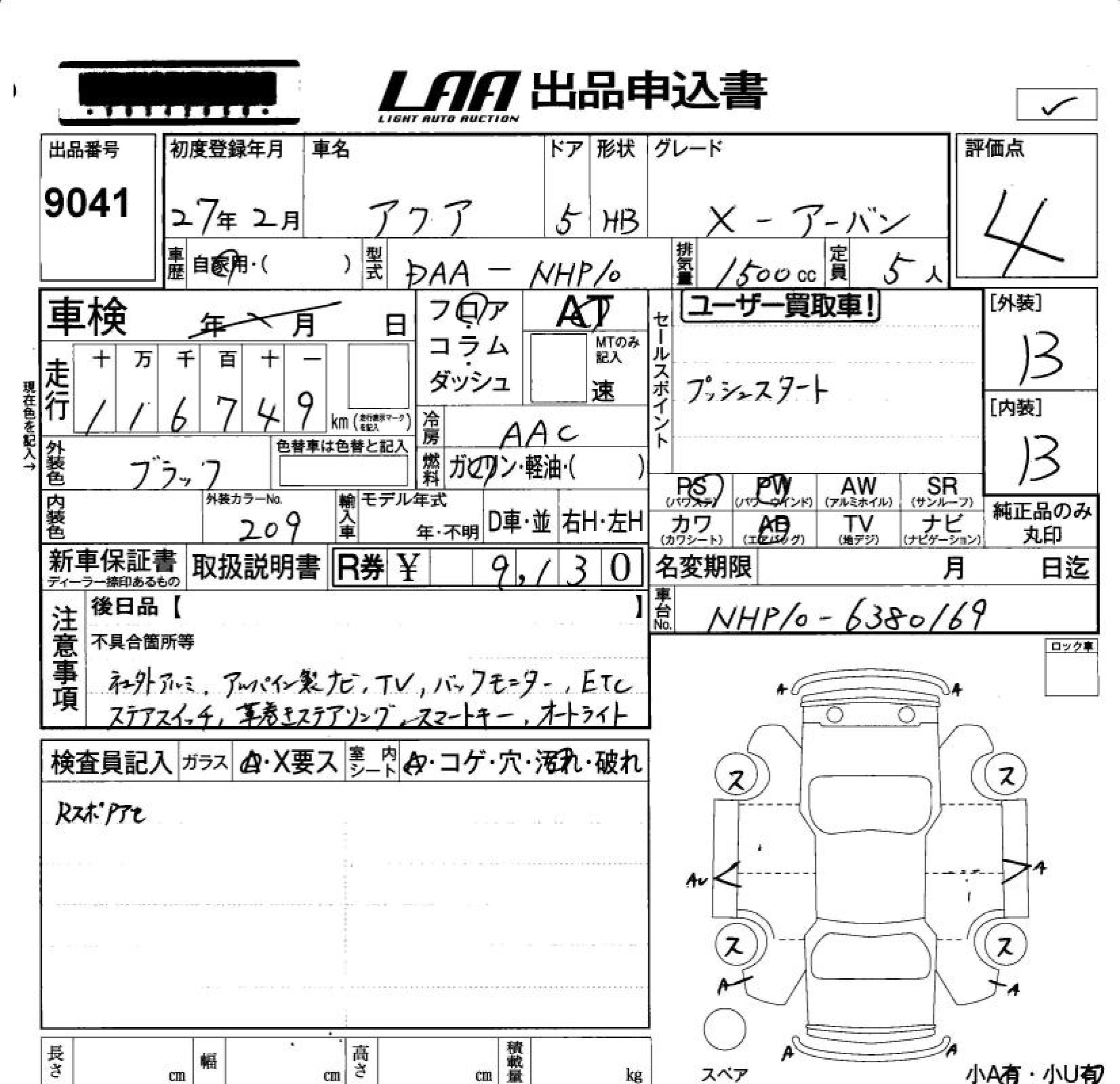 TOYOTA AQUA 2015 г., лот № 9041