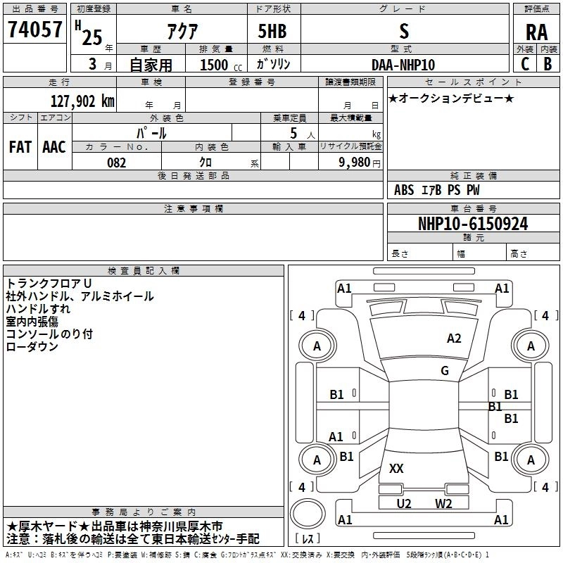 TOYOTA AQUA 2013 г., лот № 74057