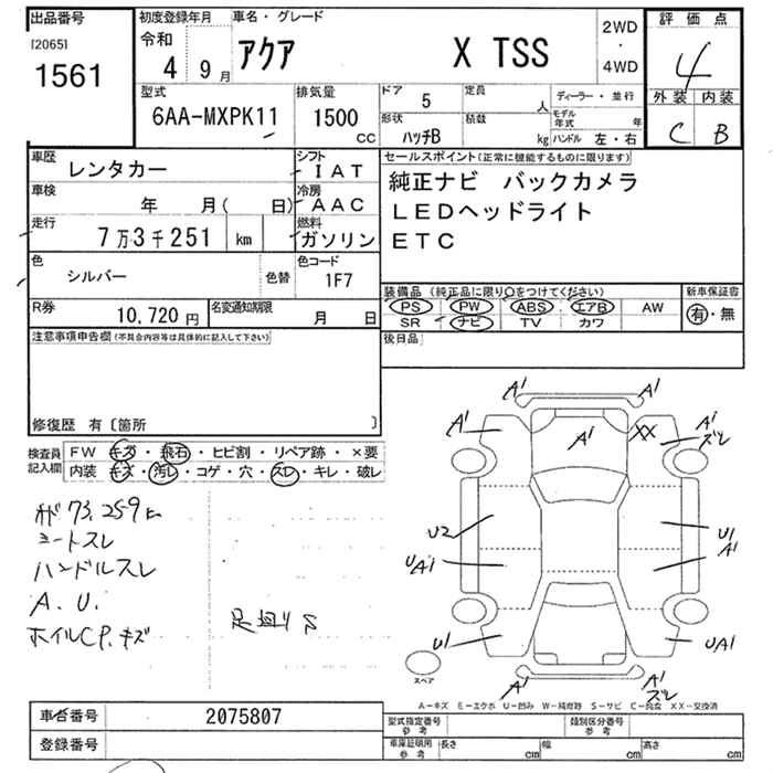 TOYOTA AQUA 2022 г., лот № 1561