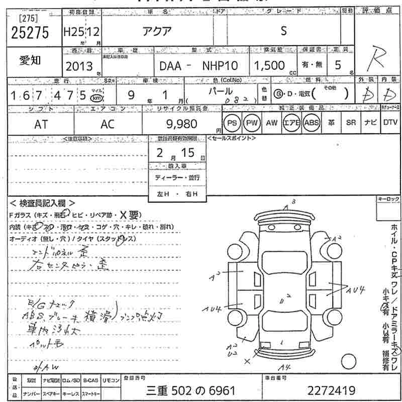 TOYOTA AQUA 2013 г., лот № 25275